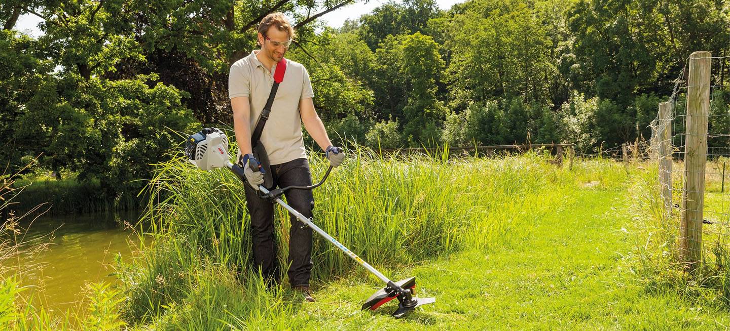 Полупрофессиональные бензокосы подходят не только для травы, но и для высоких, густых зарослей. Мощность такого инструмента достигает 1,7 л.с, ширина среза около 25 см. Техника этого класса предназначена для периодических работ в большом объеме, например, для заготовки сена, обработки большого приусадебного участка. Время непрерывной работы в таких моделях больше – до получаса, но примерно раз в час рабочий орган следует очищать от скопившейся травы. Благодаря средней мощности и производительности эти агрегаты справляются с работой быстрее.