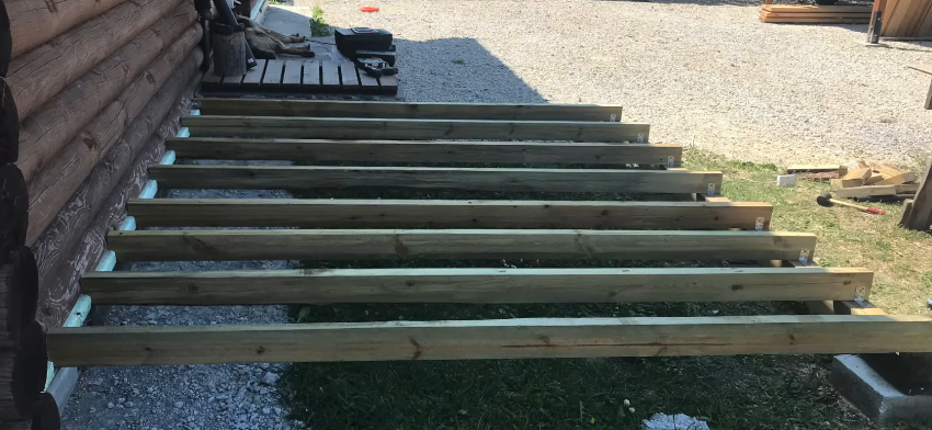 - Сверху лаг настелить террасную доску.