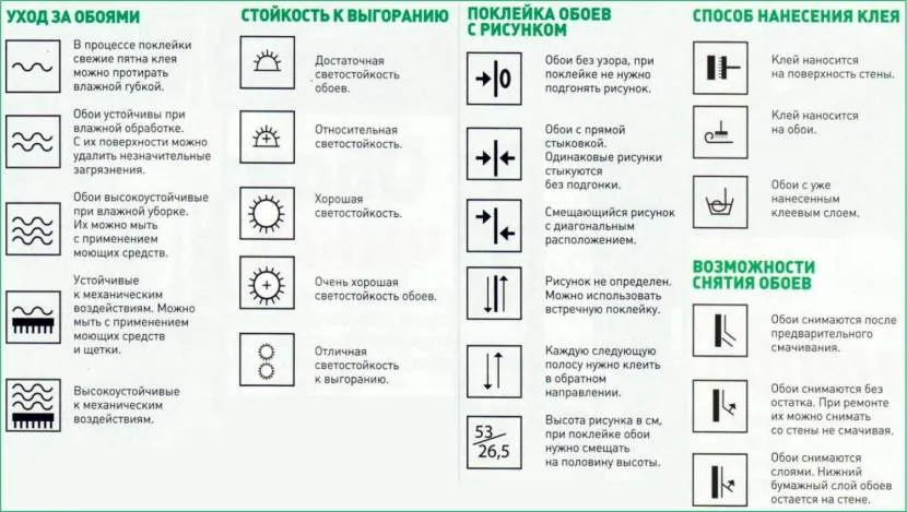 Все обои выполняются с повторением определенного рисунка через равные интервалы – раппорта. Чем выше раппорт, тем больше сантиметров с каждого рулона будет обрезаться для подгонки. Производители указывают эти параметры непосредственно на упаковке, используя специальную маркировку смещения и стыков полотнищ.