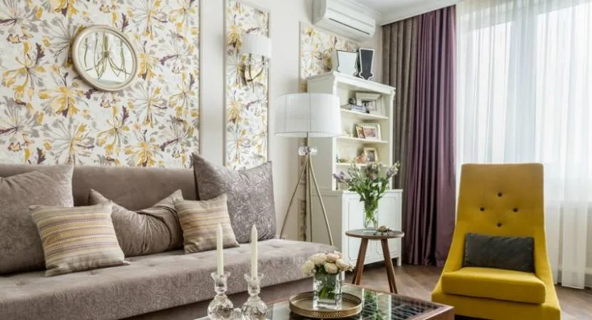 - обои-компаньоны, например, яркие в сочетании с однотонными собратьями, рельефные – с гладкими перламутровыми, абстрактные узоры – с классическим ровным полотном.