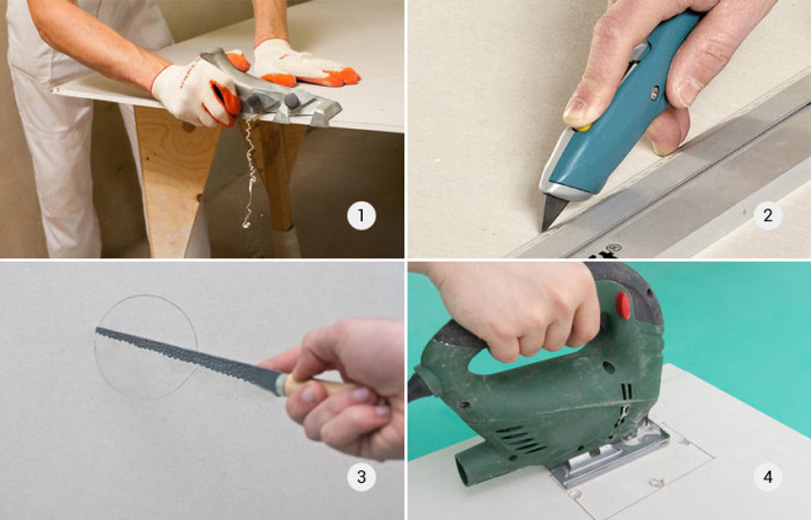Когда мы разобрались, чем режут гипсокартон, можно перейти непосредственно к способам его нарезки, количество которых также велико и разнообразно. Рассмотрим некоторые из них.