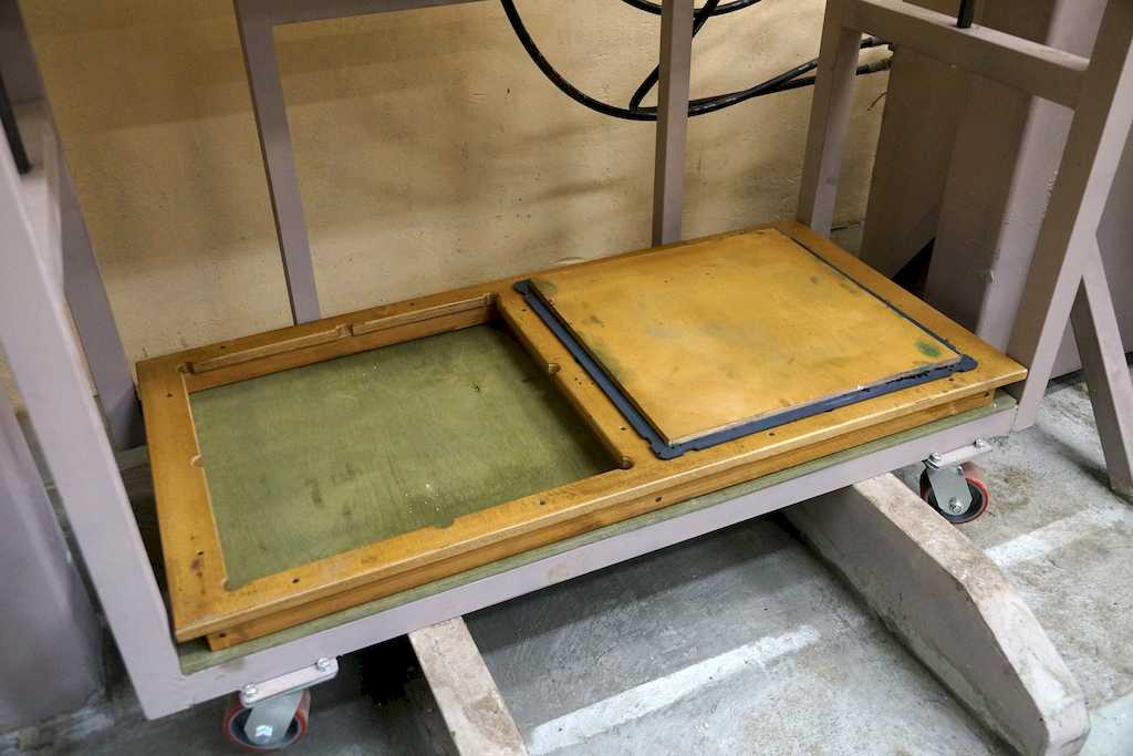 - Форма убирается с помощью тележки. Сначала нужно вернуть шток пресса в прежнее положение. С помощью гидравлической тележки достают другую – стенд.