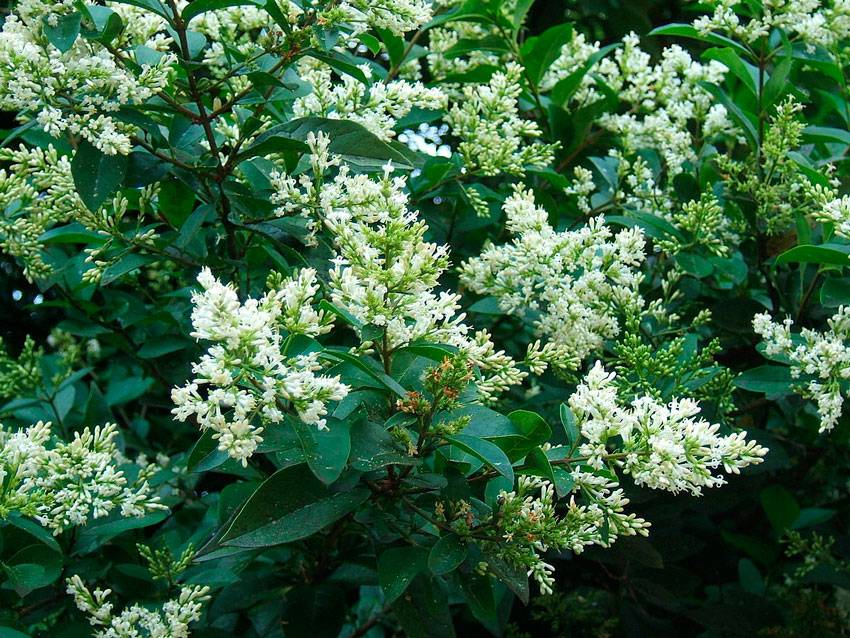 Высота кустарников – до пяти метров, листья – кожистые, ланцетные, темные, обратная сторона – светлее. Достоинство культуры – активный рост в молодом возрасте, ограды формируются быстро и легко, при этом сохраняют плотность и декоративность. Растение позволяет создавать широкие и красивые изгороди средней или низкой высоты. Для формирования ограждений лучше всего подходят декоративные формы бирючины обыкновенной.