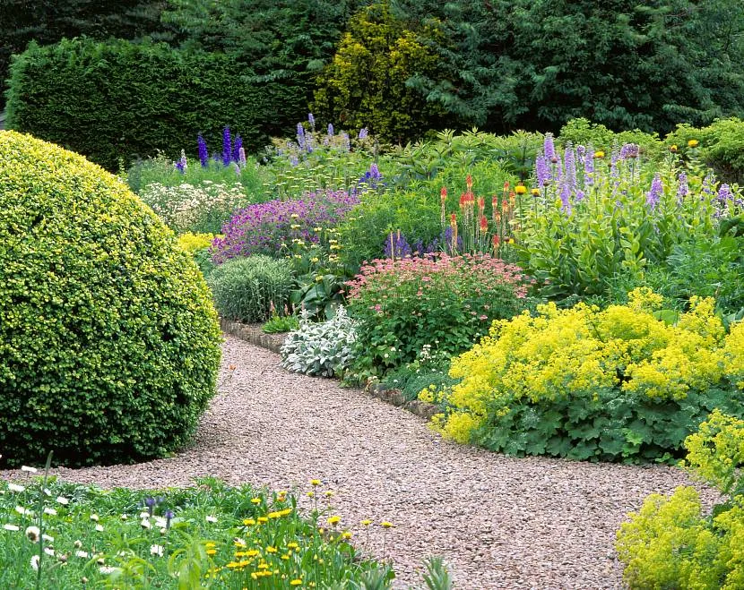 Некоторые виды цветников используются для разграничения участка и устраиваются, например, между парковкой и спортивной площадкой, между патио и хозяйственными постройками.