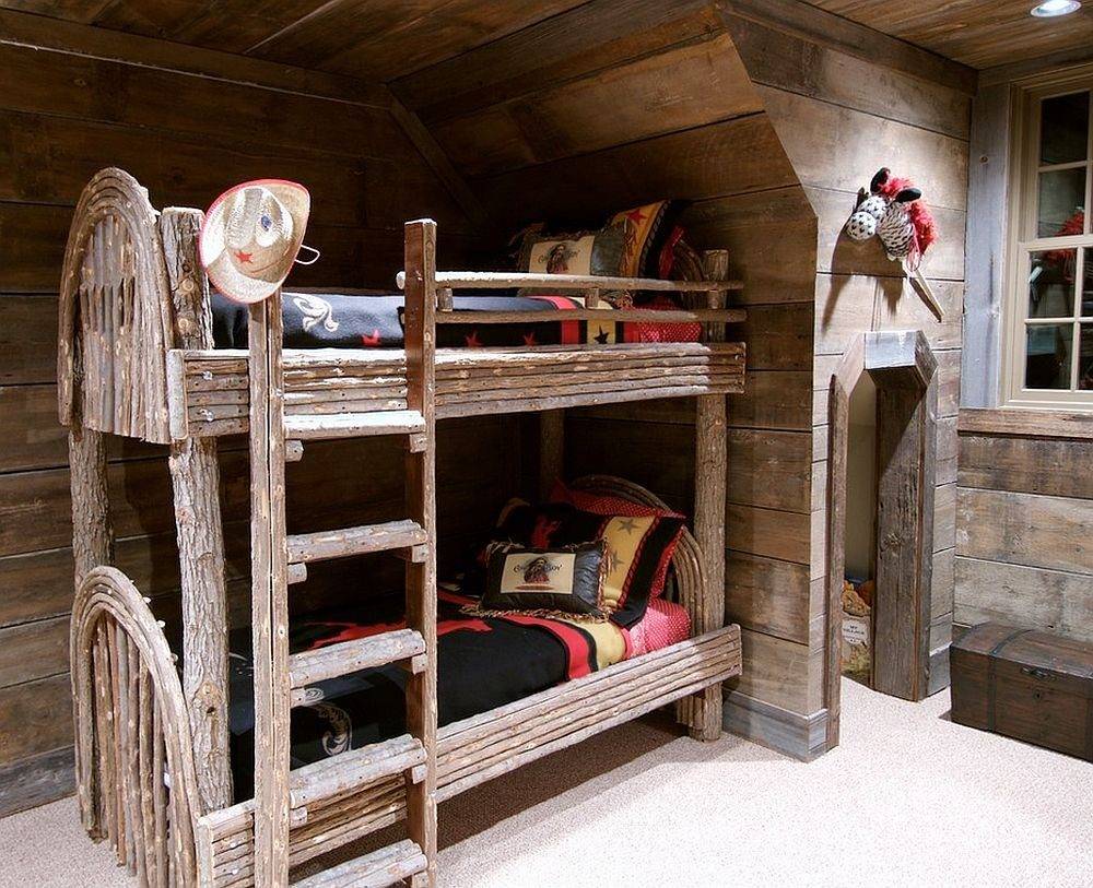 Для контраста использовали сосновые балки, тонированные под старое дерево. Они убедительно дополнили образ естественной кантри-детской, визуально не утяжелив пространство. Кроме того, деревянные балки четко определили все границы в комнате, поэтому помещение стало казаться больше.
