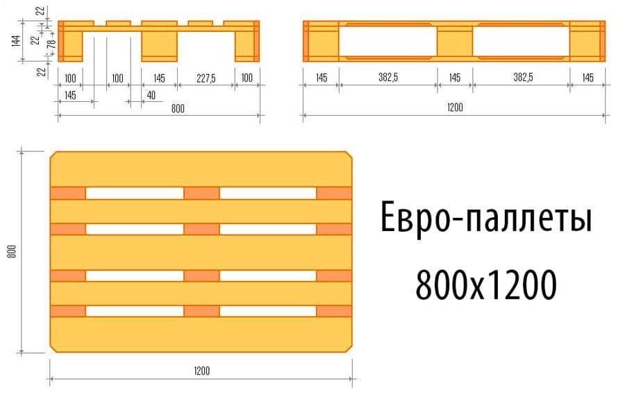 В России деревянные паллеты изготавливают следующих размеров: