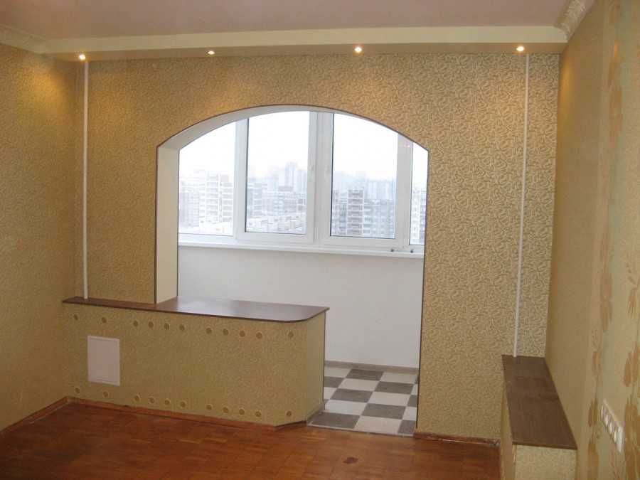 - лоджию и кухонное помещение; Пример деления кухонного пространства и лоджии
