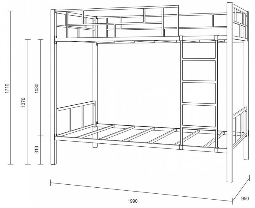 Ниже вы можете видеть чертежи двухъярусной кровати: