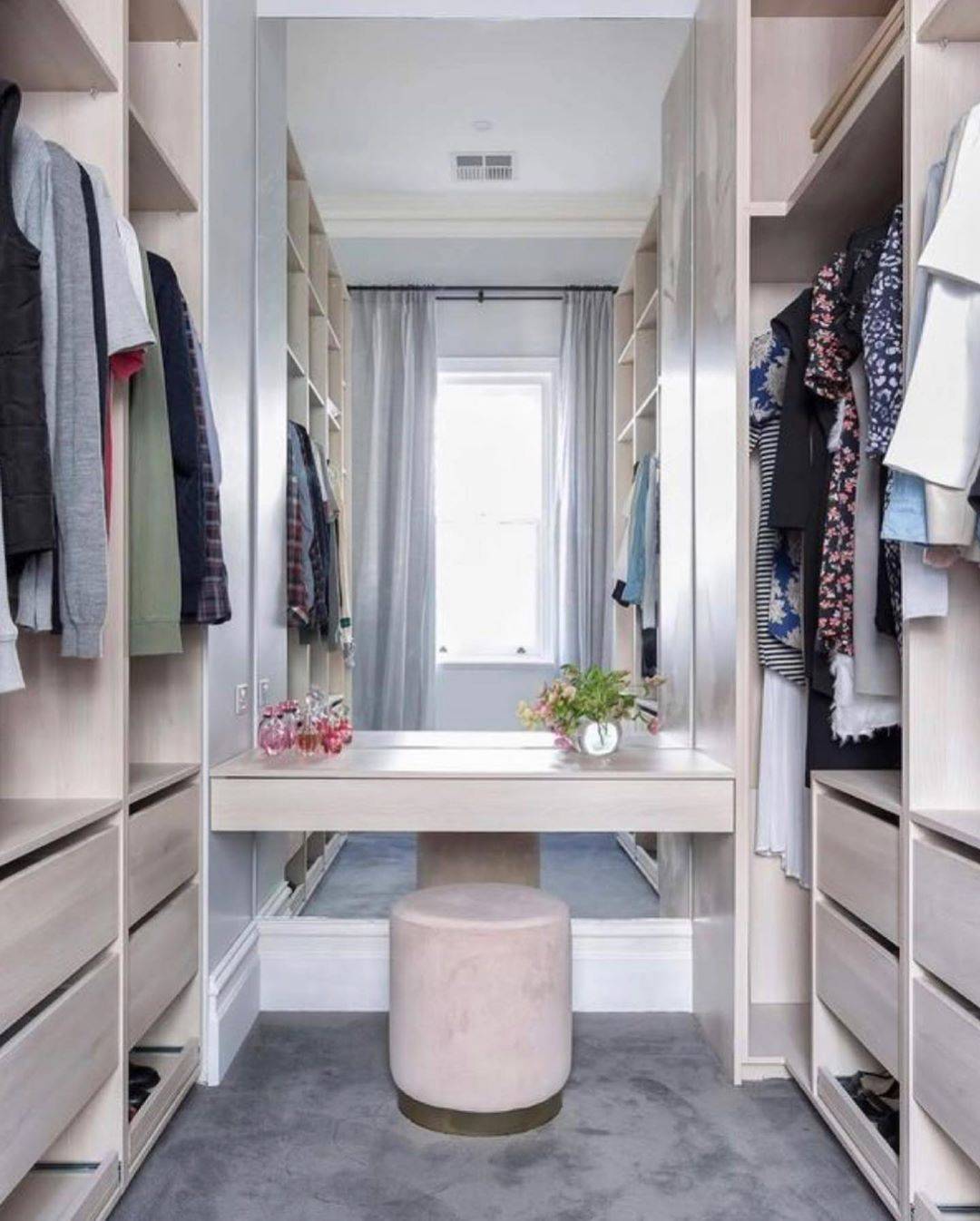 Зеркала — неотъемлемый элемент гардеробной комнаты. Разместите зеркала таким образом, чтобы можно было рассмотреть себя в полный рост и удобно выбирать наряды.