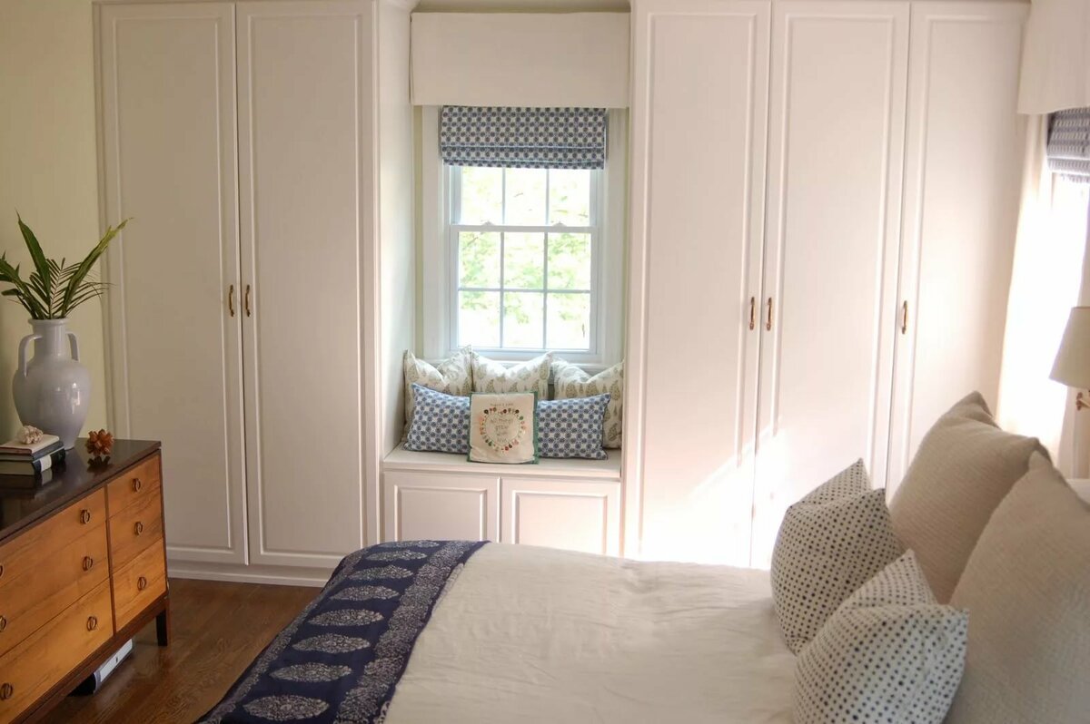 Существует множество вариантов организации гардеробной у окна в спальне. Рассмотрим некоторые из них: