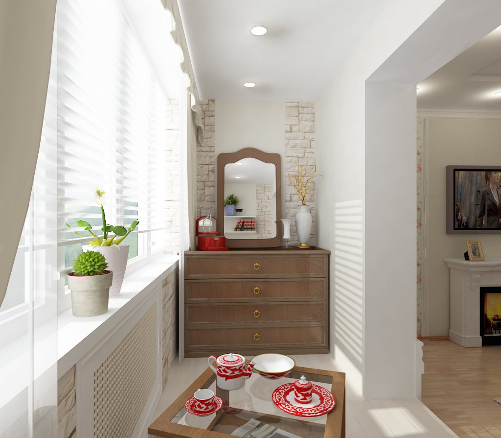 - Использование балкона как дополнительного помещения сделает более просторным основную комнату, так как из нее будут убраны лишние предметы.