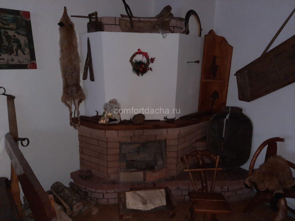 Русская печь с лежанкой в доме с большой гостиной и спальней