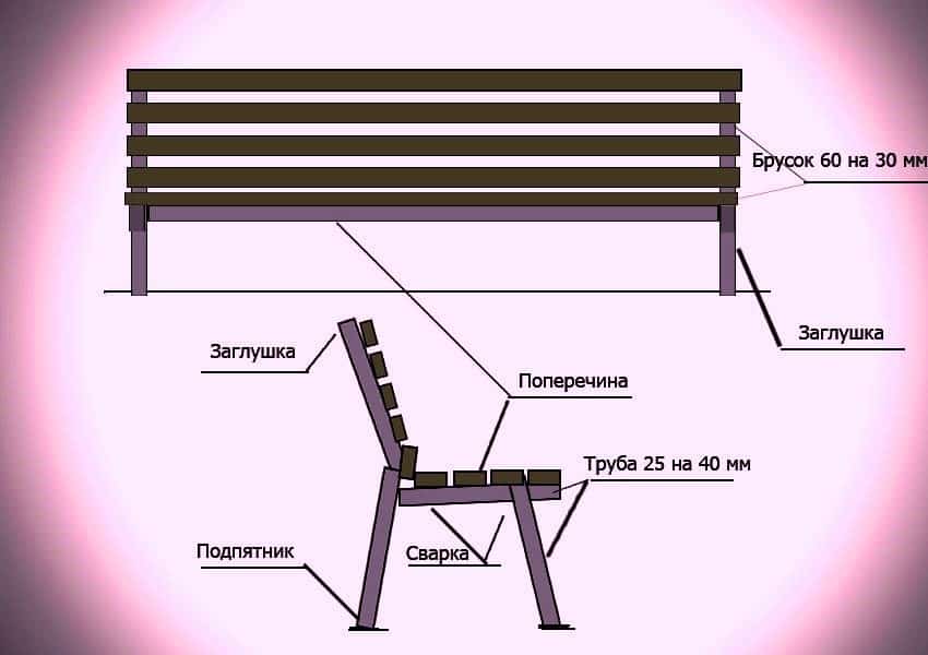 Чертежи с размерами лавочек и скамеек из профильной трубы