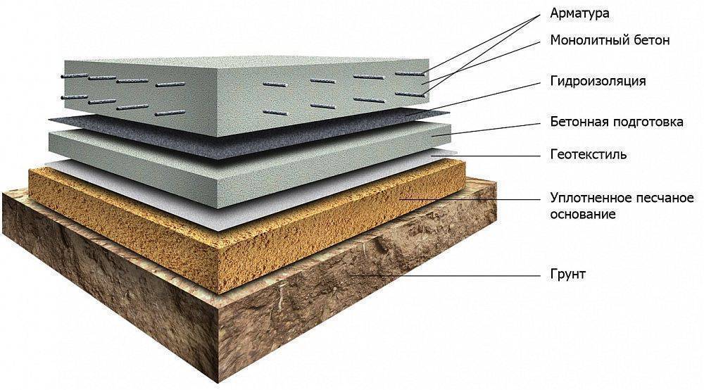 - Железобетонная основа – дешевая и износостойкая. Благодаря железобетону можно легко смонтировать монолитную базу со сложной конфигурацией.