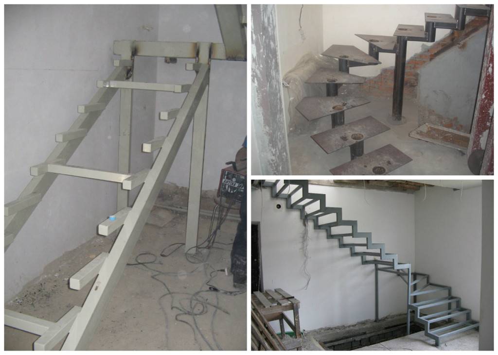 Опираясь на чертежи, нарезают швеллеры на отрезки нужной длины. Чтобы создать каркас ступеней необходимо уголки сварить с отрезанными кусками швеллеров. Далее обрабатывают все металлические детали защитными составами. Осталось только установить полученную конструкцию. Для этого следует определить с месторасположением основания под лестницу. На выбранном участке выкапывают котлован глубиной 0, 5 м. Нижнюю часть конструкцию помещают в вырытую яму. Засыпают ее щебнем. Затем заливают бетонной смесью.