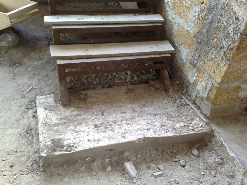 Первичными условиями для строительства бетонного спуска в подвал является наличие прочного основания. Это может быть залитый армированный пол или специально подготовленный небольшой фундамент.