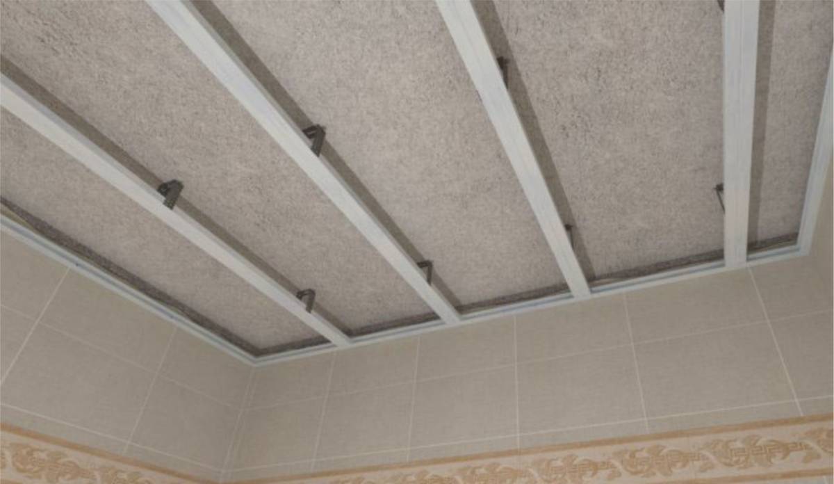 Для сооружения обрешетки (под монтаж пластиковой вагонки) выпускаются специальные металлические профили. Можно выполнить каркас из деревянных балок, однако в условиях повышенной влажности возможное проникновение пара может вызвать коробление, искривление и изменение геометрии каркаса и самой подвесной поверхности. Защитить деревянные балки можно краской или лакированием.