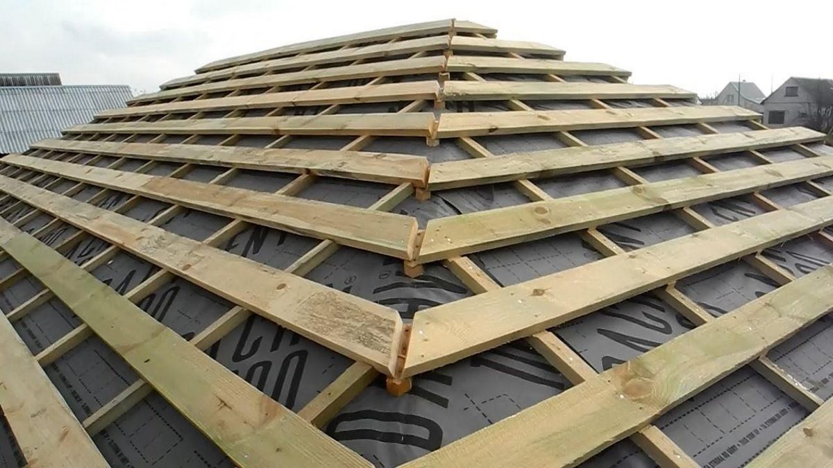- требуется сплошной вид каркаса, то есть нужно нашить бруски на стропила и сверху уложить обрезную доску сплошняком;