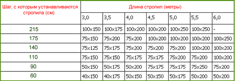 Следует учитывать: под длиной стропила в данном случае понимается расстояние между точками опоры!
