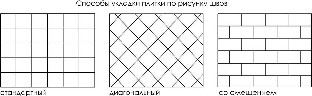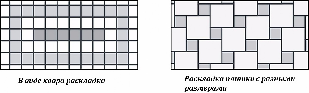 Плитка на пол может быть уложена в обычном порядке (ребра элементов покрытия располагаются параллельно стенам помещения) и по диагонали. Второй способ имеет ряд существенных недостатков: