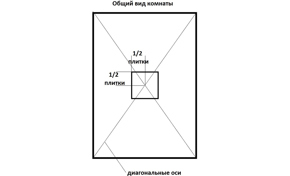 - Укладка плитки начинается с середины пола (место пересечения диагоналей), что не позволяет выполнить полный цикл разово.
