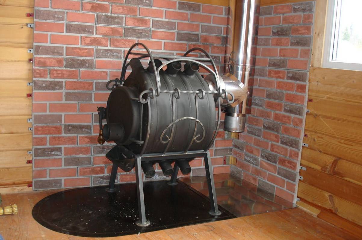 Как видите, достоинства булерьяна были заложены в конструкцию ещё на этапе проектирования. Возможно, разработчики и не подозревали, что их детище станет настолько популярным и будет использоваться как в быту, так и на производстве. Конечно же, как и любая другая конструкция, конвекционная печь этого типа не лишена и некоторых недостатков. Прежде всего, заявленной производительности агрегат достигает только при использовании абсолютно сухих дров. При влажности топлива более 10% выделяющийся водяной пар препятствует поступлению воздуха и снижает интенсивность горения, что приводит к уменьшению КПД. Кроме того, как и любая буржуйка, булерьян совершенно не держит тепло — достаточно топливу прогореть, как температура в помещении начинает падать.