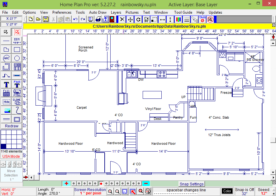 Четвертое место рейтинга по праву достается программе Home Plan Pro. Утилита в первую очередь создана для проектировки помещений. В данной программе вы сможете легко осуществить свою задумку при помощи удобных инструментов. А наличие большого количества готовых решений в виде моделей дверей, окон и стен, позволит существенно ускорить рабочий процесс.
