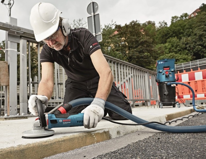 С помощью болгарки появляется возможность обработки бетонного пола в труднодоступных местах