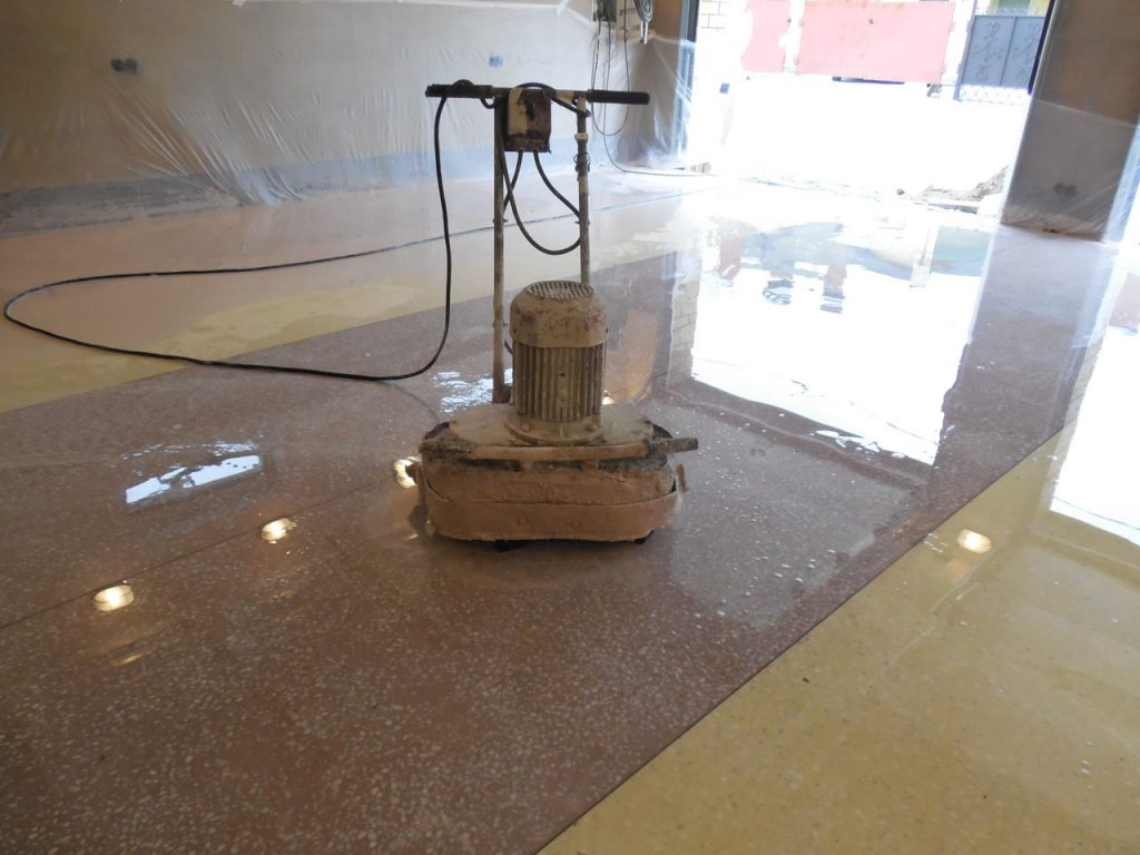 Работы проводятся с помощью мозаично-шлифовальных машин, которые относятся к специализированному технологическому оборудованию, выпускаемому для размерной и фактурной обработки покрытий, выполненных из бетона или природного камня. Проводя шлифование бетонного пола, мастера используют сначала фрезы с крупным алмазным зерном, а затем – с мелким.