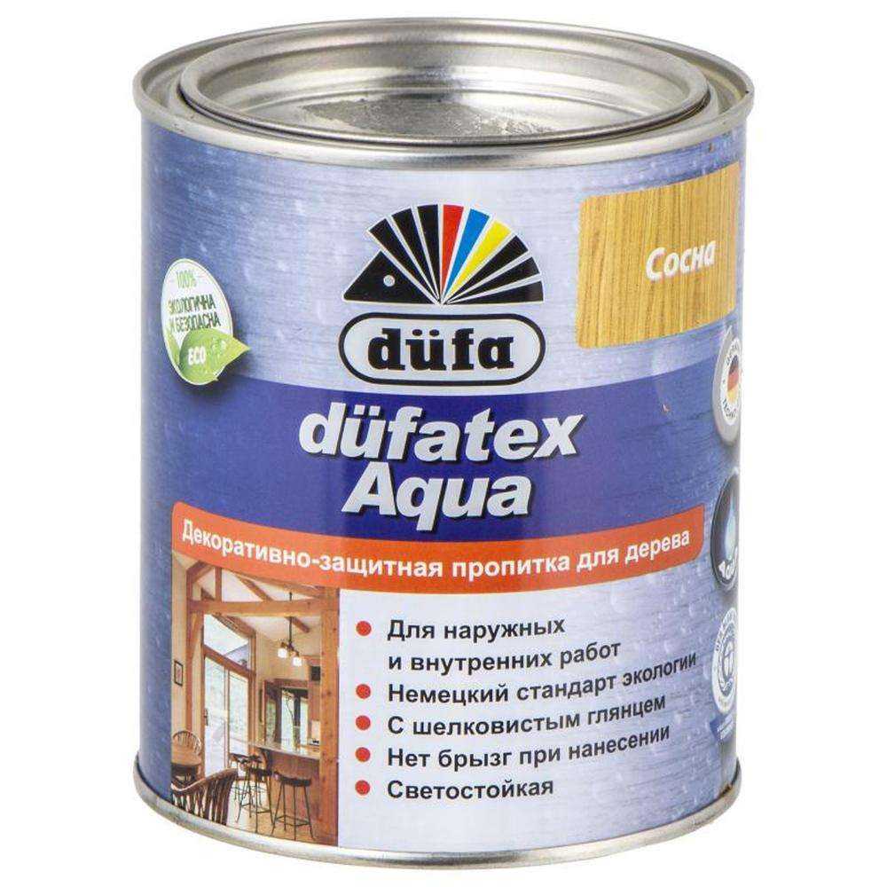 Еще одна универсальная пропитка для бревесины на все случаи жизни. Прозрачная, подходит для всех пород дерева, предназначена для внутренних и наружных конструкций. При этом она отлично пропускает воздух, защищает материал от ультрафиолета и не имеет резкого запаха. Антисептик для древесины Dufatex aqua также уничтожает жучков, плесень. Этот продукт не растекается, равномерно ложится и даёт лёгкий сатиновый глянец.