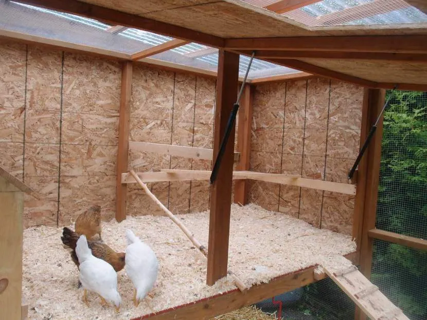 Внутреннее убранство курятника должно включать в себя достаточное освещение, вентиляцию, плюс место, которое будет обустроено специально для выгула куриц. Максимальное число голов на 1 м 2 не должно превышать 3 штук. Следовательно, если планируется в будущем увеличивать число птиц, лучше строить птичники посвободнее.