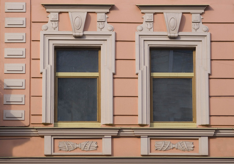 Применение стеклофибробетона и полимербетона дает возможность избежать негативного влияния воздействия температуры и влаги. Ограничивает их использование существенная масса изделий. В некоторых случаях при установке таких наличников учитывают возросшие нагрузки на стену и делают ее мощнее.