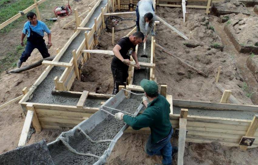 Шаг 7: Заливка приготовленного бетона в траншею для ленточного фундамента