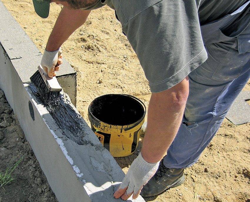 Шаг 8: Обеспечение гидроизоляции фундамента обмазочными материалами