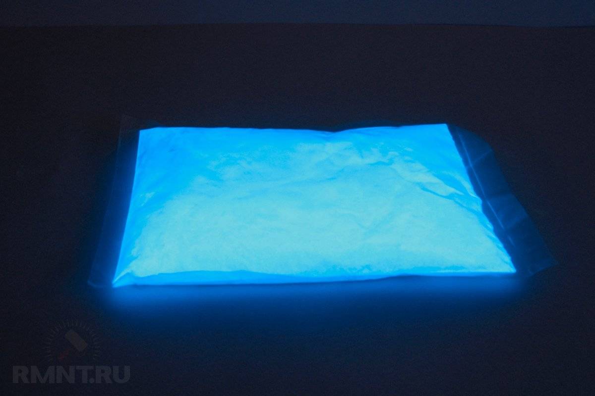 - Добавить люминесцентный пигмент. Количество люминофора определит яркость краски и насыщенность свечения, показатель колеблется в пределах 15-50%. Оптимальная доля пигмента — 30%.