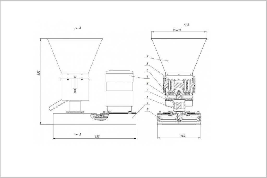 - Подготавливают мясорубку, но через такой агрегат не получится пропустить твердые отходы. Чтобы оценить, насколько хороший такой гранулятор, нужно подготовить схему изготовления. Выгода от использования такого прибора очевидна – минимум затрат, однако придется купить металлический диск для изготовления матрицы того же размера, что и решетка мясорубки.