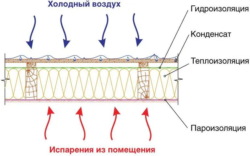 Таким образом, теплый воздух из помещения очень медленно просачивается между волокнами, вытесняя оттуда холодный.