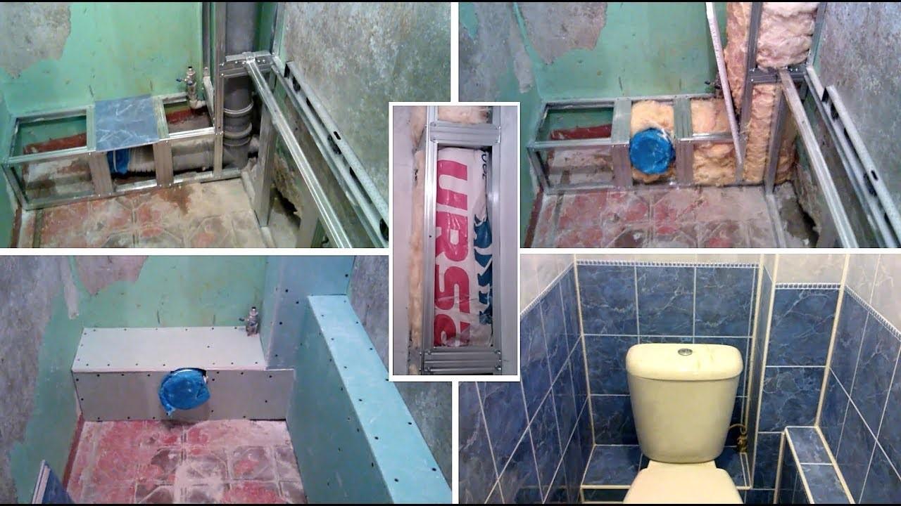 - горизонтальный Г-образный или П-образный короб по периметру задней стенки туалета и вертикальный короб для стояков.