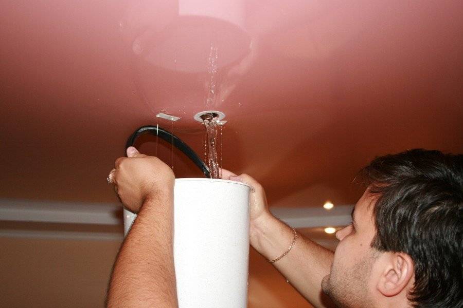Сливать воду, накопившуюся под потолком, необходимо после выполнения всех подготовительных этапов