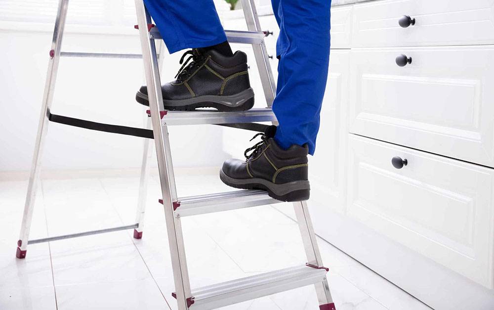 - Всегда используйте устойчивую стремянку, лестницу или другую конструкцию, чтобы не тянуться на носочках к потолку, а уверенно дотягиваться руками.