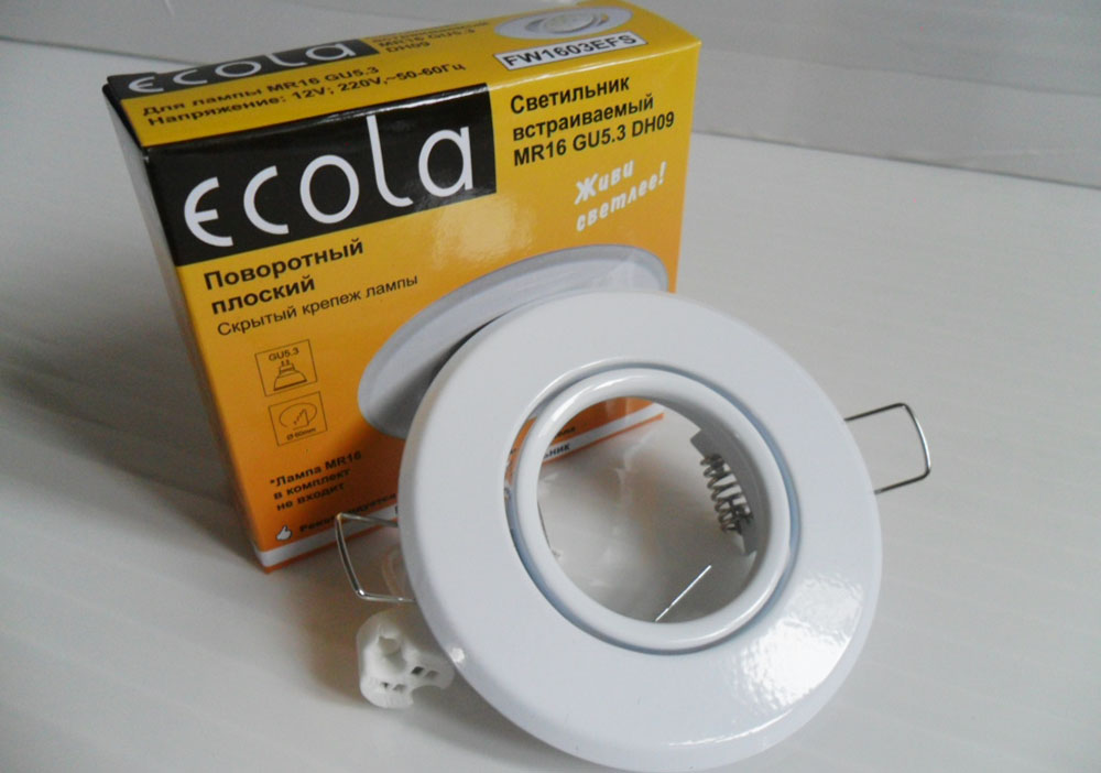 Нужно сказать несколько слов про споты для натяжных потолков и сами лампочки, которые в них используются.
