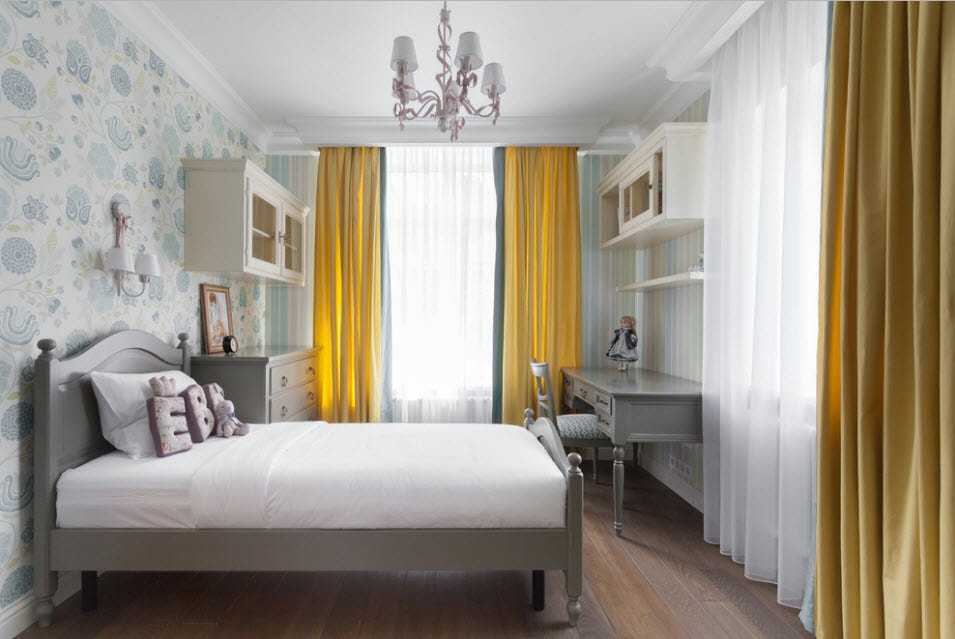 Для малых комнат отличной идеей является сочетание однотонных обоев без рисунка с яркой отделкой на некоторых стенах. Помните, что мелкие узоры визуально уменьшают размеры стены, а крупные, наоборот, увеличивают. Аналогично, яркие и темные обои помогут «укоротить» длинную стену, а светлые – увеличить короткую. Следующее фото интерьеров демонстрирует, как это простое правило работает на практике.