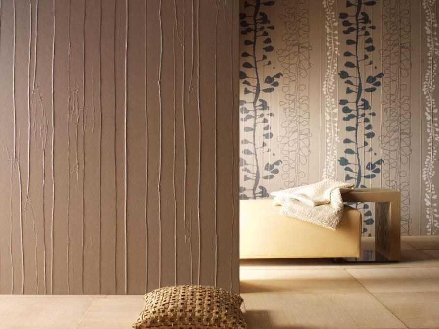Комбинируются не только отделочные материалы, но и виды обоев-компаньонов. Сочетать между собой можно бумажные и виниловые обои, натуральные и текстильные, жидкие и металлизированные.