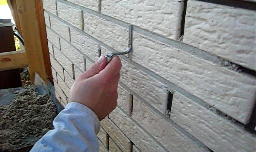 При кладке отделочного кирпича, для получения красивого ровного шва используют металлические или деревянные прутки. Пруток кладут на предыдущий ряд, укладывают и выравнивают раствор, а затем кладут кирпич. После укладки нескольких кирпичей пруток достают из шва. Таким образом, получаются одинакового размера швы на всей стене, которые в дальнейшем необходимо выровнять расшивкой. Выровнять швы необходимо до того как раствор окончательно застынет. Облицованные кирпичом дома имеют прекрасный вид.