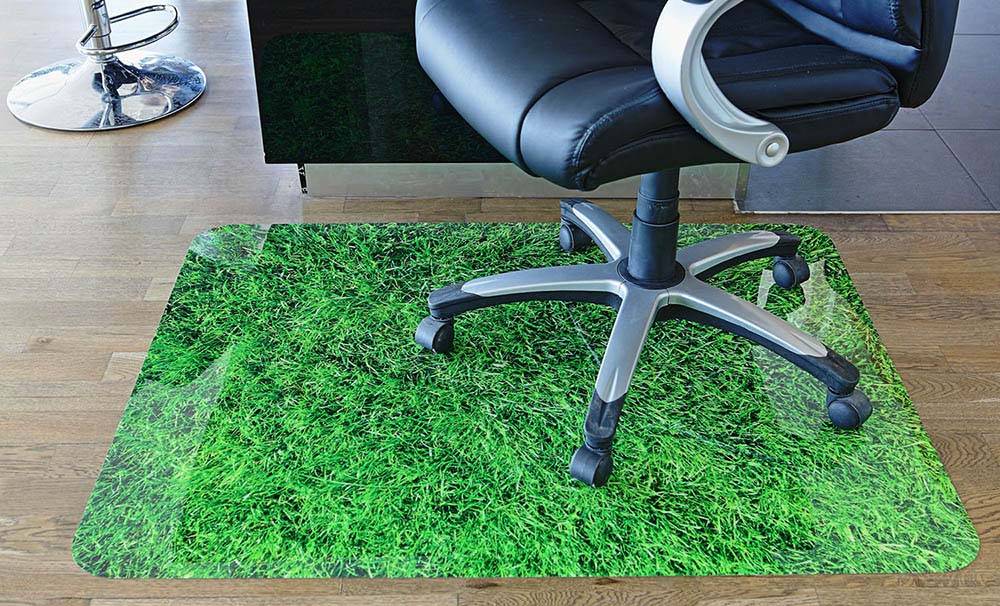 Небольшой коврик под компьютерным креслом предотвратит преждевременный износ ламината от частого катания мебели на роликах.
