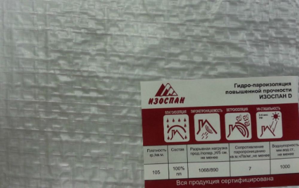 - Паро- и влагозащитная пленка «Изоспан»различных серий. Он выдерживает высокие температуры и отражает ультрафиолетовые лучи, при этом сохраняет тепло.