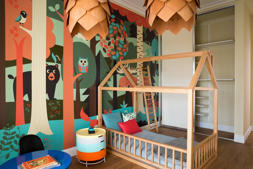 Если вы оформляете обоями детскую, не стоит покупать только «детские» обои. Они стоят дорого, а от ярких мультяшных героев и зверушек быстро начнет рябить в глазах. Просто подберите к рулону «сказочных» обоев более недорогие бумажные (экологичные) однотонные покрытия (лучше пастельные) и скомбинируйте их по вашему вкусу.
