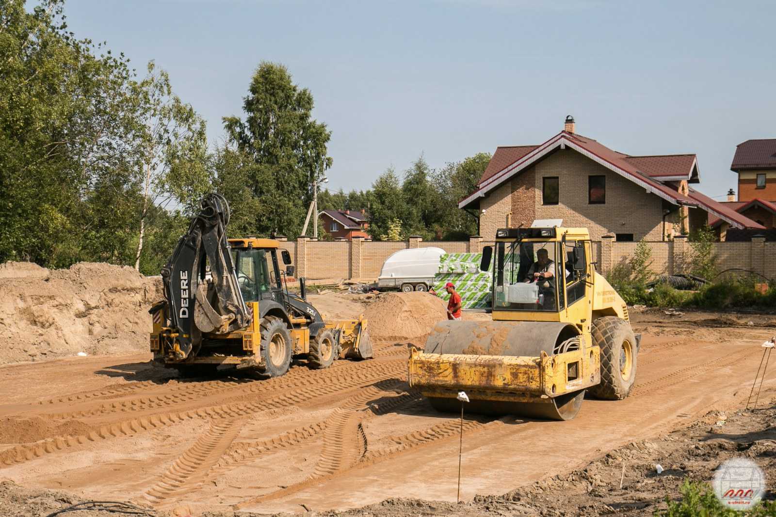 - Теперь делается плавающая подушка из трамбованного песка. Высота подушки не менее 0,5 м. Засыпка выполняется постепенно с послойной трамбовкой.