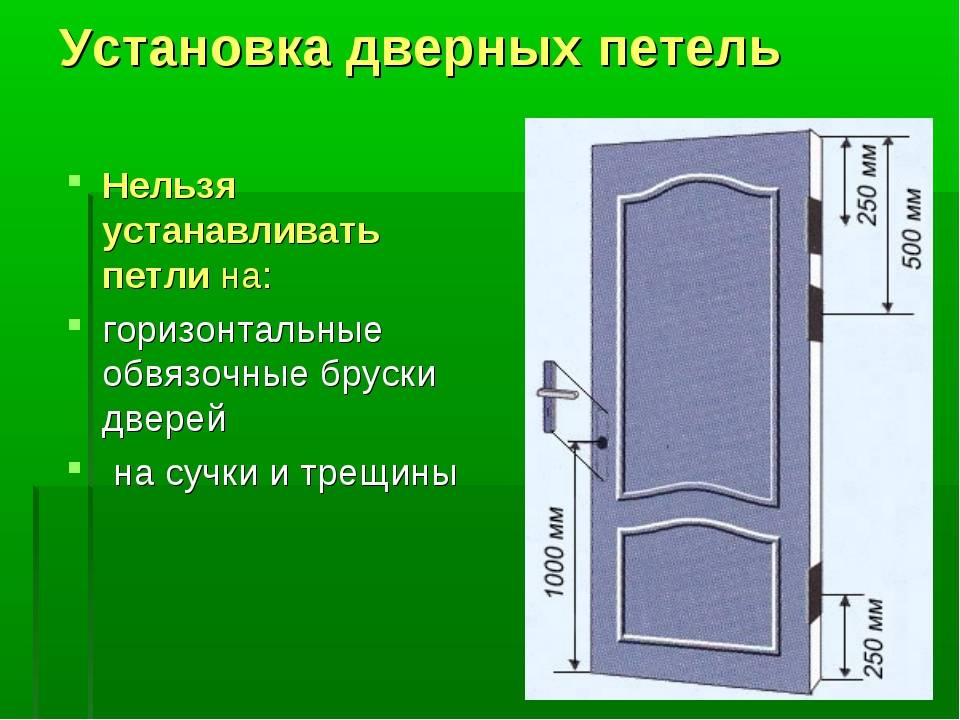 Если схемы нет, то можно разметить вручную. Для этого ставим отметку на расстоянии 60 мм от края двери.