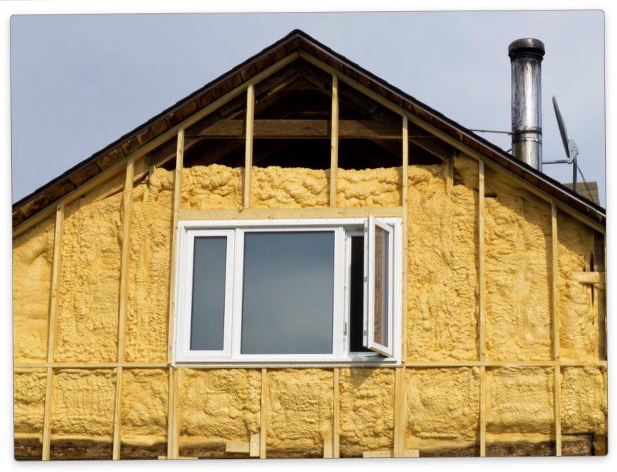 Отличный материал по всем показателям, к которым можно смело добавить еще и способность изолировать стены от шума. Есть один, но очень «жирный» минус — цена и сложность монтажа. Предупредим сразу, решить проблему, утепления деревянного дома утеплителем под названием пенополиуретан, своими собственными силами не удастся. Это объясняется тем, что данный материал наносится на стену в жидком виде (субстанции) и под большим давлением. Для приготовления непосредственно утеплителя и его подачи на поверхность необходимо специальное оборудование, окупаемость которого наступает при регулярном использовании.